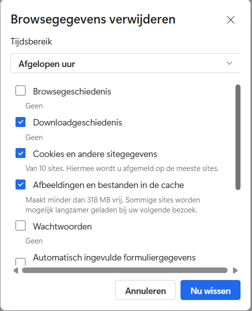 • Klik op de toetsencombinatie [CTRL] + [SHIFT] + [DEL]